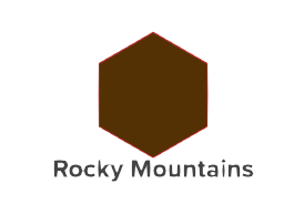 Finally, landforms – the border-spanning Rocky Mountains being the map’s sole example – are symbolized by a jagged hexagonal shape of rocky implication.