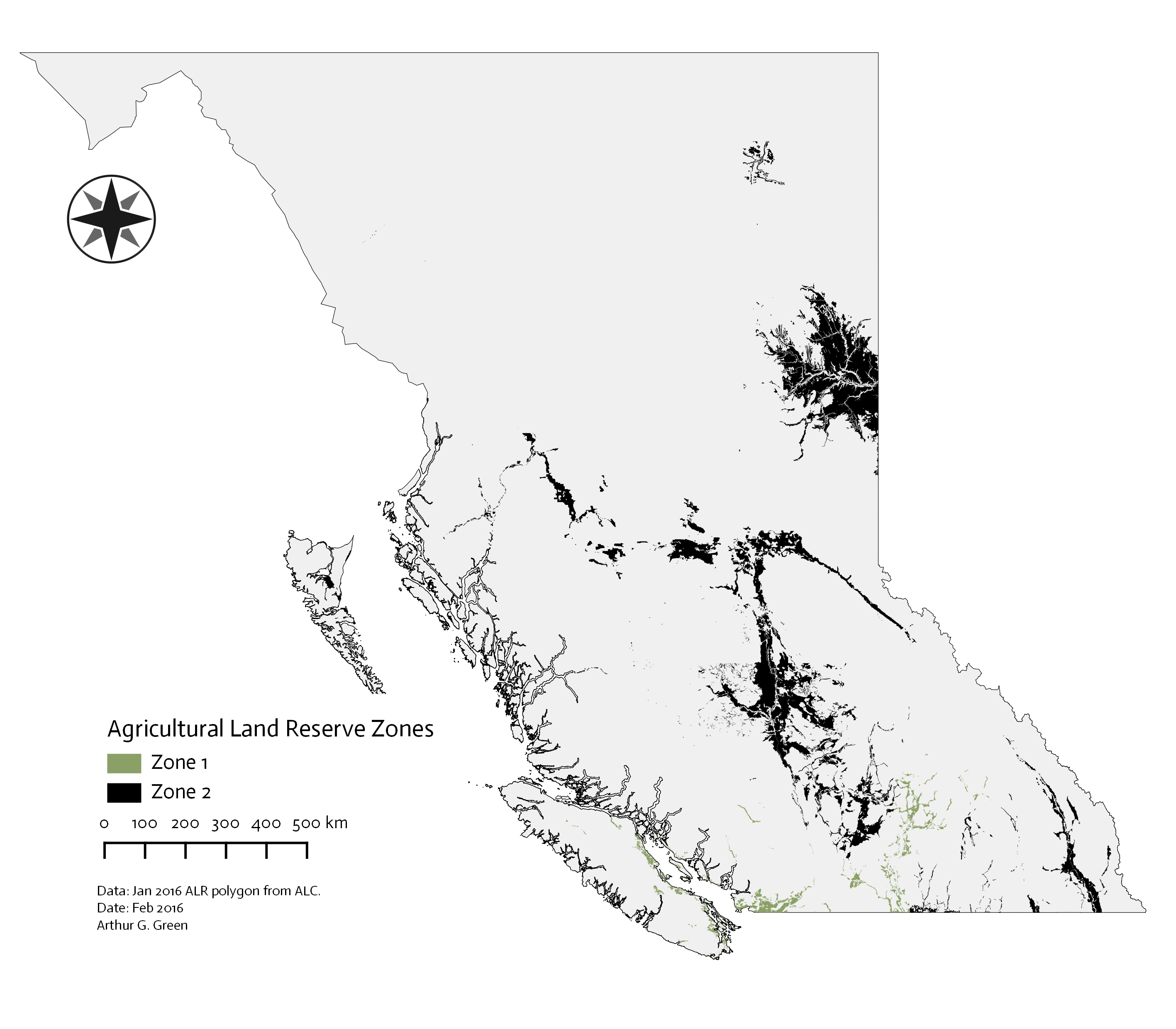 - Green, Arthur G. 2016. ALR Background. Agricultural Land Reserve Mapping. Flexible Learning Project, Department of Geography, University of British Columbia: Vancouver. https://blogs.ubc.ca/alrmap/alr-background/ ↩︎